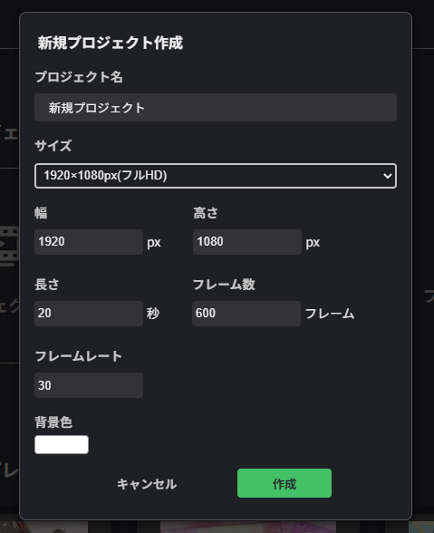 選択すると「新規プロジェクト作成/設定画面」が表示されるので