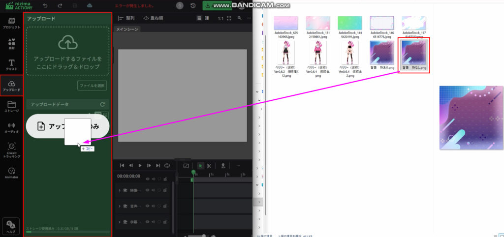 データを用意出来たら「Nizima Action!!」にドラッグ&ドロップ