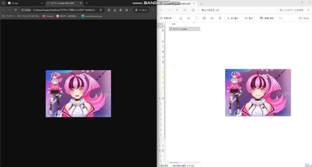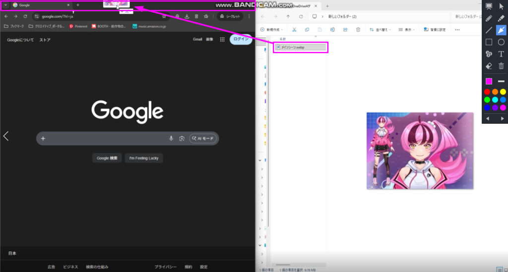 「WebPデータ」を「Googleのタブ」にドラッグ&ドロップするだけ