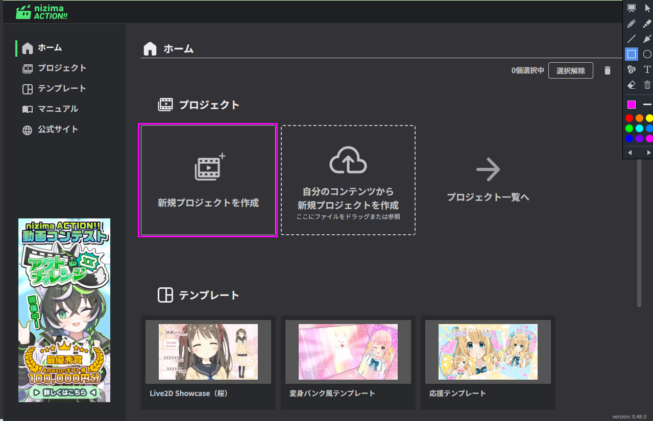 まずは下記リンクから「nizimaAction!!」をひらくよ