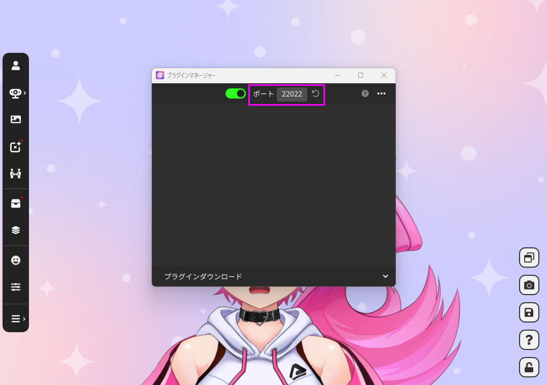 「プラグインマネージャー」が開けたら画面内にある「ポート番号」を覚えてね