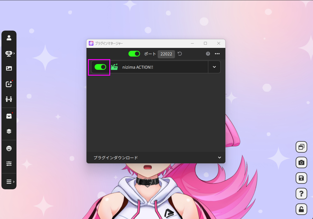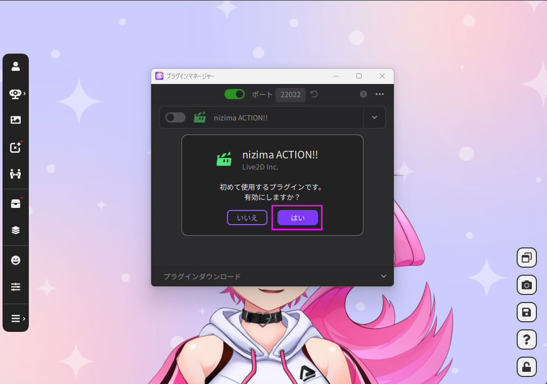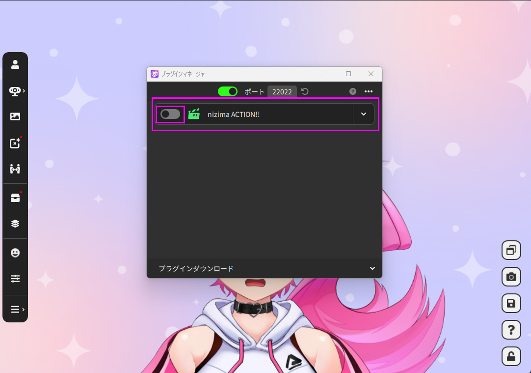 「Nizima Live」側のプラグインを有効にできたら「nizima Action!!」に戻ろう