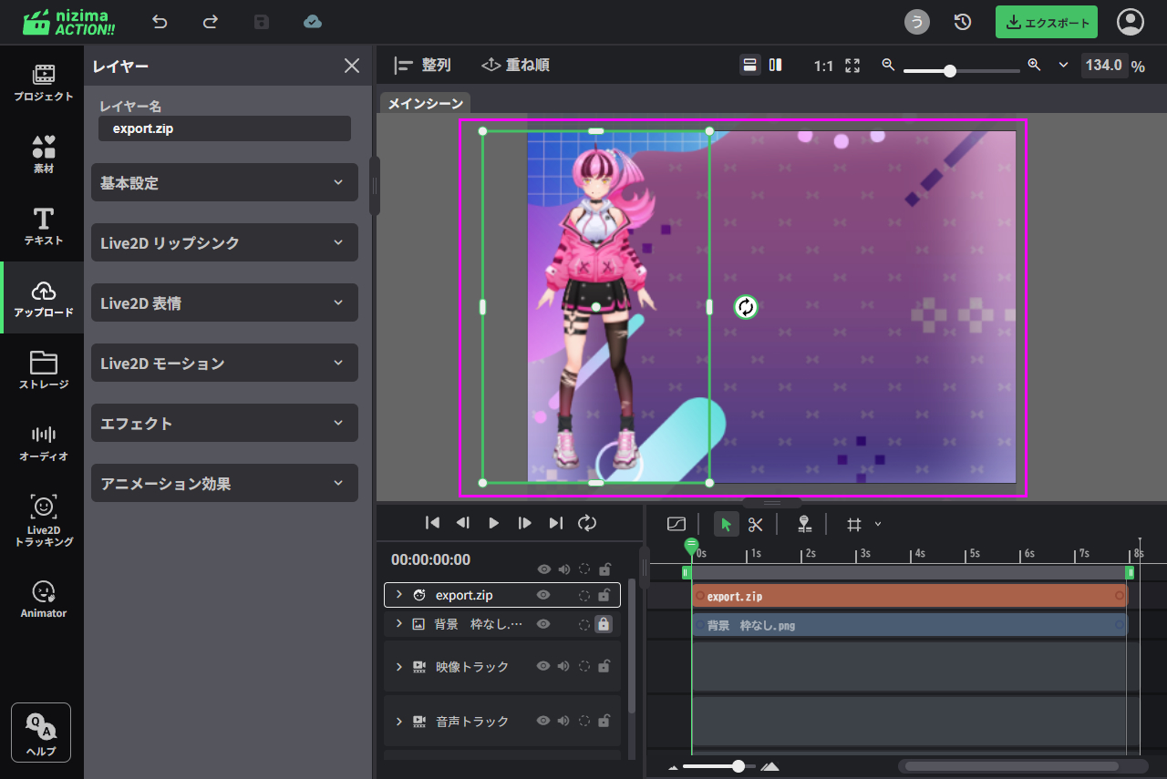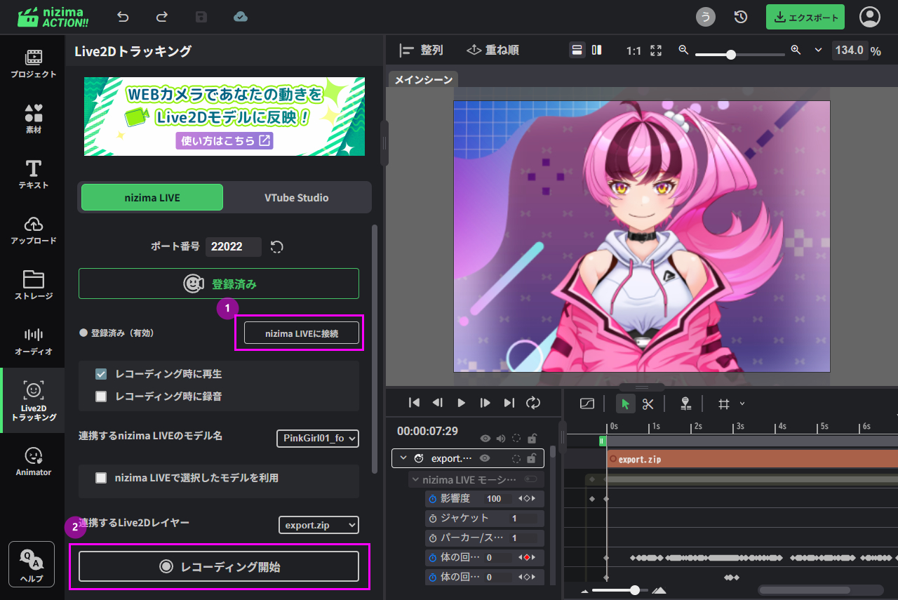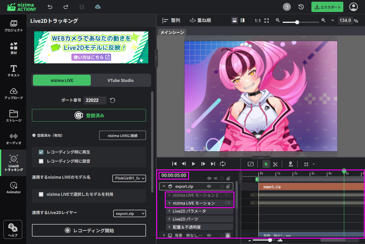 これにて【5:「Nizima Live」と連携して動かす】は完了だ