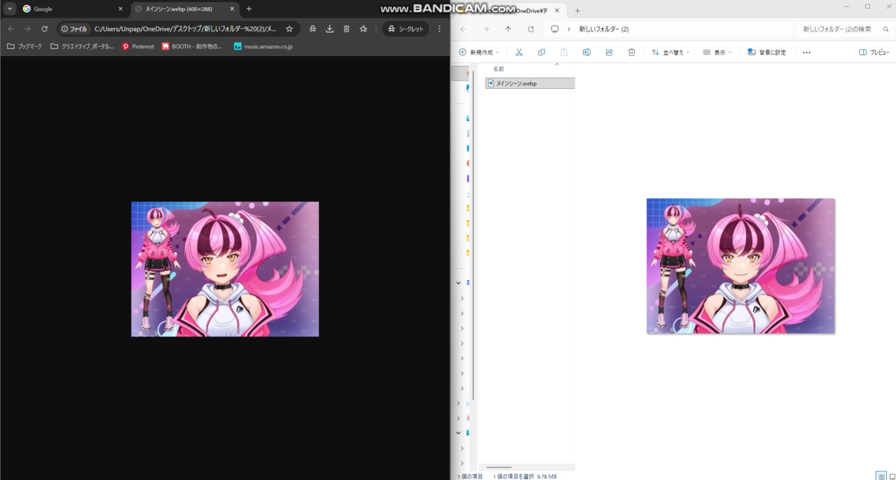 「WebPデータ」を「Googleのタブ」にドラッグ&ドロップするだけ