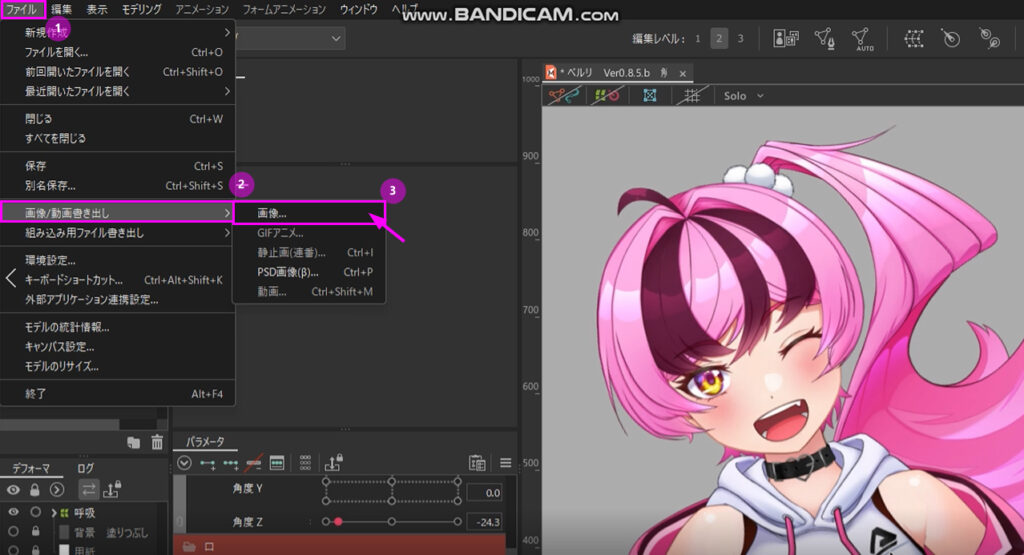 Live2D Editorで「背景透過画像」を書き出す方法【スクリーンショット】