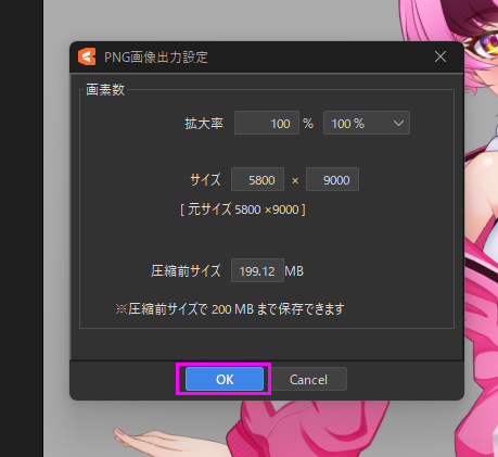 Live2d Editorの「画像書き出し」は「PNG形式」しかないよ
